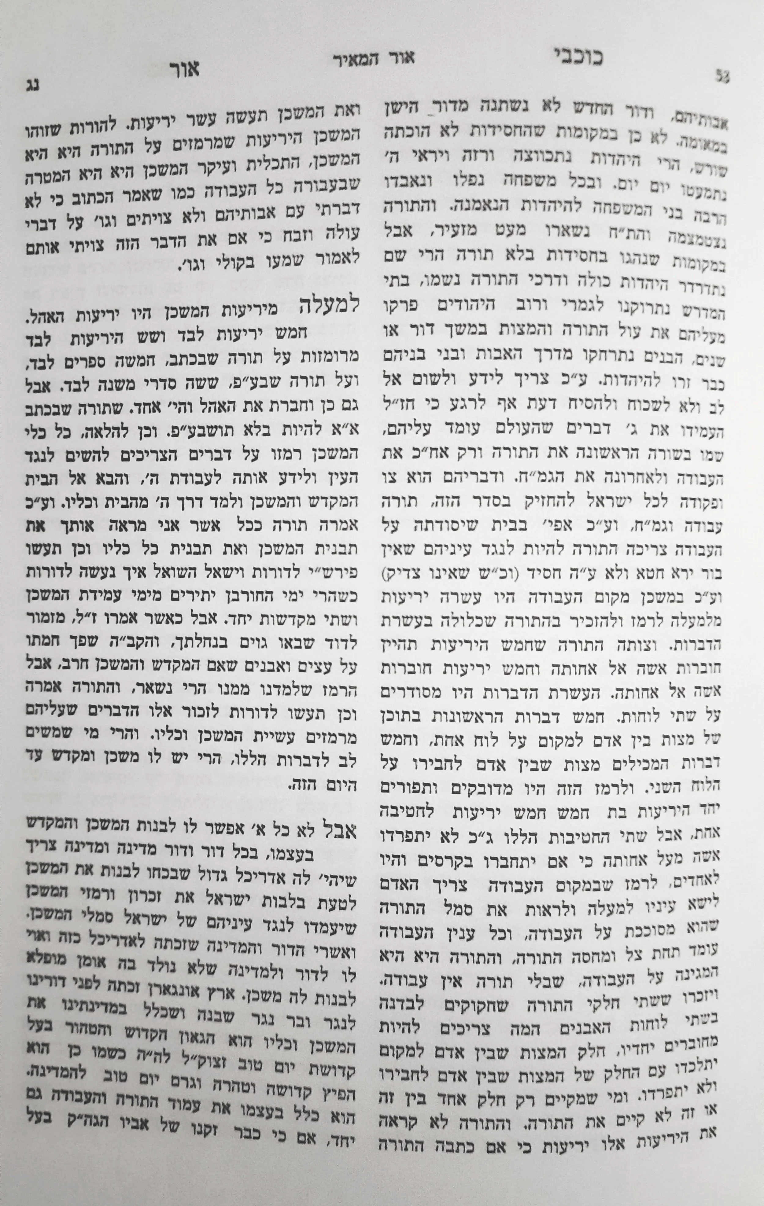 Emlékezzünk arra is, hogy a Tóra két részét, melyeket különálló kőtáblákra véstek, össze kell kapcsolni: az ember és a Mindenütt Jelenlévő közötti ügyekkel foglalkozó parancsolatokat együtt szükséges kezelni az emberek egymás közötti kapcsolatait szabályozókkal. Nem szabad elválasztani őket egymástól. Aki csupán az egyik területre fókuszál a kettő közül, az nem teljesíti a Tórát. A Tóra nem „kárpitoknak” nevezte ezeket a kárpitokat, ehelyett így fogalmazott: „A Hajlékot pedig készítsd tíz kárpitból” (2Mózes 26:1) – hogy megtanítsa, a Tórát jelképező kárpitok maguk a Miskán. A Miskán rendeltetése és lényege maga a cél, amelyért az ávojdó is létezik, ahogy a vers mondja: „Mert nem az égőáldozatokról és vágóáldozatokról beszéltem atyáitokkal, és nem azokról parancsoltam nekik (...) hanem azt parancsoltam nekik, mondván: Hallgassatok a szavamra” (Jeremiás 7:22–23).